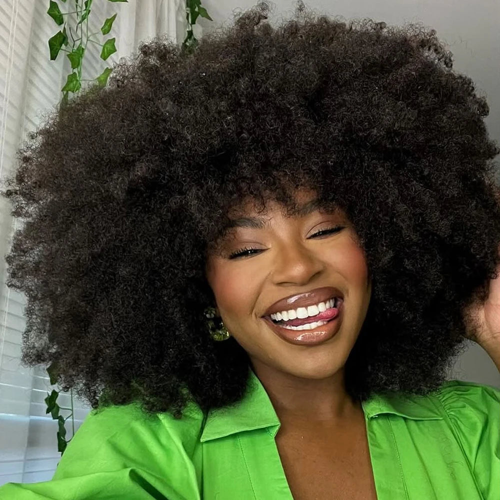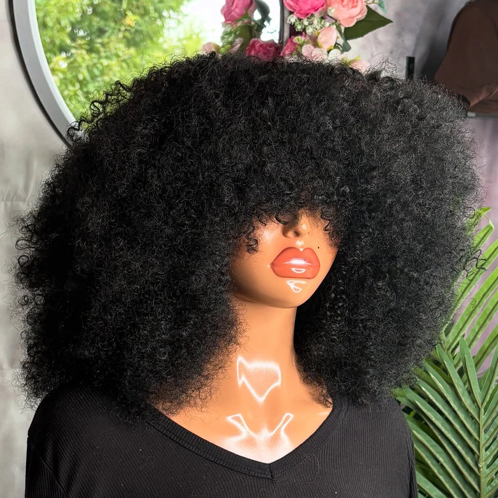 Yaam Afro Kinky Curly Wig with Bang Human Hair 400 Density